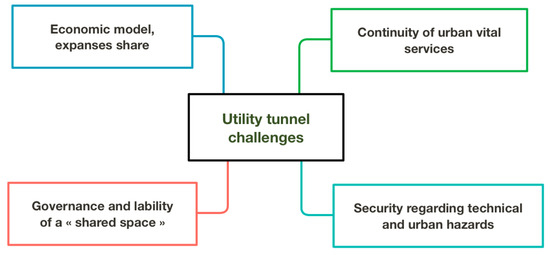Management and liability also constitute serious challenges for companies in charge of hosted utilities [7,11,12,13]. Generally, these companies are worried about liability involving the risk of explosion and flood, as well as the presence of other companies working in the same space. Companies expect transparency concerning tunnel governance and the sharing of expenses from the utility tunnel manger.