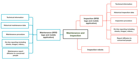 Figure 7 illustrates how smart technology can help in improving the quality of inspection and maintenance of utility tunnels. In addition to the digital identification and geo-localization of the tunnel and utilities components, each component is equipped with inspection and maintenance RFID tags, which are connected to the “smart management platform” via mobile application.