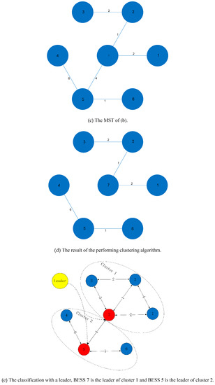 In this paper, BESSs are classified by clustering based on the Kruskal algorithm. Herein, is the set of all edges, and is the result of the algorithm in iteration, where one edge of is removed in order to get a new set under the condition that the objective function in Equation (1) can get the maximum. When the inequality Equation (2) is satisfied, the iteration of the algorithm ends and this algorithm runs out.
