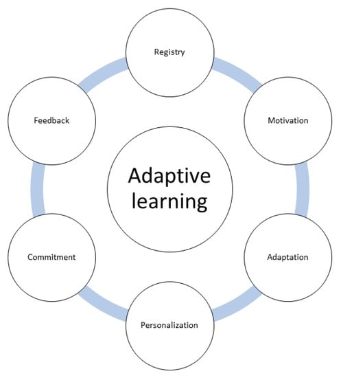 Adaptive learning is any pedagogical initiative based on analysis, by the academic environment, of data generated during the students’ learning process. This monitoring is known as learning analytics—it allows the learning process to be adapted to the educational needs of each student [18]. In this way, adaptive learning allows each student to achieve the knowledge required in each course at their own pace, thus becoming a pedagogical system capable of giving personalized attention to the largest number of students possible in school environments that are increasingly diverse [19]. Adaptive learning optimizes the learning process of each student, identifies the topics that must be reinforced and progresses with those that have already been understood, opting for higher levels if the student has a good preparation and basic levels if he lacks it [20].