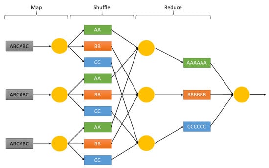- Dean, J.; Ghemawat, S. Mapreduce: Simplified data processing on large clusters. Commun. ACM 2008, 51, 107–113. [Google Scholar] [CrossRef]