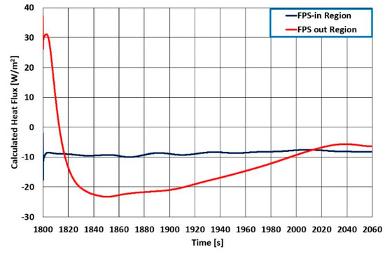 Calculated heat flux trend for the walls in correspondence of the top section of the FPS.