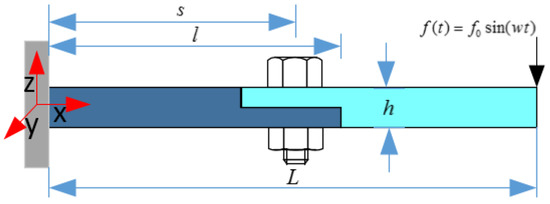 Figure 1 depicts the considered bolted cantilever beam that consists of one cantilever beam in the left and a free lap beam in the right connected by a bolt. It is assumed that one single sine excitation force is applied in the right end of the structure, with being the excitation amplitude and being the excitation frequency. According to