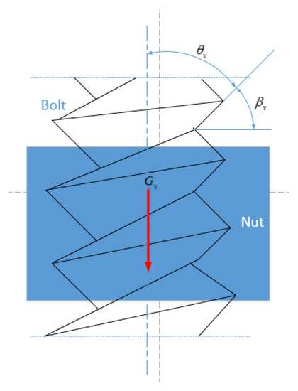 Gv between the screw and the nut acts on the helix with pitch diameter. Since the helix can be developed into an oblique straight line on the plane, the effect of the force in the screw pair is the same as that between the slider and the inclined plane, as shown in