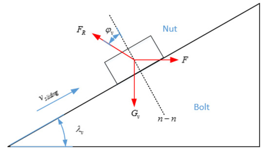 of along the middle diameter, the relationship between the nut and the screw can be simplified as that of the slider sliding along the groove surface. The inclination angle of the inclined plane is the thread rising angle on the pitch diameter of the thread; thus,