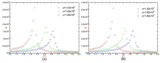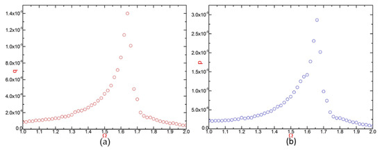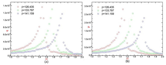 Figure 8a,b exhibit that in the first-order generalized coordinate system, as the value of dimensionless frequency