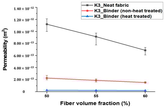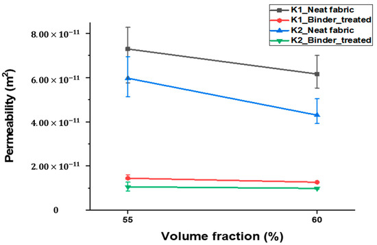 Change in the permeability in the out-of-plane direction according to the binder treatment.