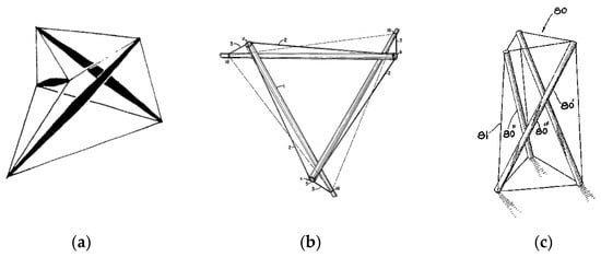 Patents of Simplex modules: (a) Emmerich’s [], (b) Fuller’s [], (c) Snelson’s [].