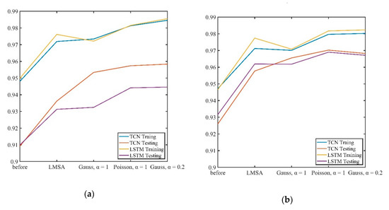 Accuracy of long short-term memory (LSTM) classification results. (a) PN-training-a. (b) LH-training.
