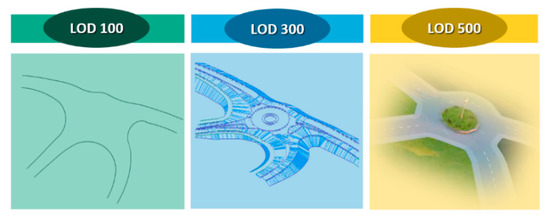 The main subject to be taken into account for using BIM in infrastructure projects such a hydraulic works, roads, railways, complex structures, complex foundations, and even historic restoration works is that these projects have different characteristics compared with architectural works and the BIM application should be resolved by the use of specific solutions and tools. That must start with the application of scales consistent with the level of development (LOD) of the project that in turn should be coherent with the definition or detail level of the project development (see Figure 1).
