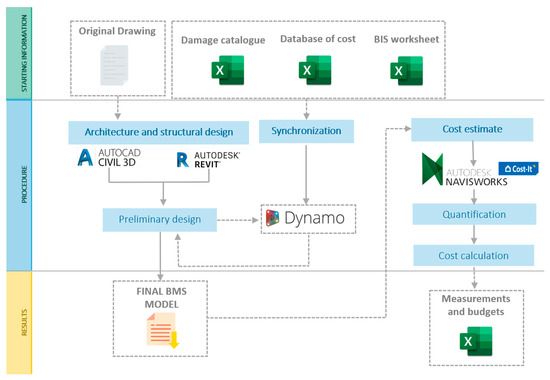 - Link up the BIS incorporating the field information with the structure. For that purpose, a programming code in Dynamo must be created that is to be repeated for each possible damage in each structural element, as can be seen in Figure 7.
