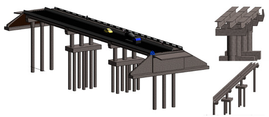 The BIM methodology has been proposed to incorporate the bridge inspection to a BIM model. A flyover bridge (Figure 5) was selected because of the great similitude of elements and typology with many other bridges and because of the design simplicity that would allow extending the model to other bridges with scarce modifications.