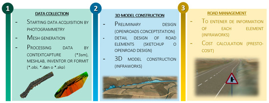 It must be taken into account that the activities for constructing new linear works are only a small percentage of the total network and that suggests that the new efforts should concentrate in developing efficient systems of management and maintenance. Initially the information was obtained manually and later, progressively, a fleet of technology equipped vehicles was launched. In parallel, several software packages were developed to allow the fast and simple management of the site data. At this point it is necessary to use BIM models to gather the saved information, so achieving better planning and cost reductions due to the automatic transferring of the information. There are already several successful BIM applications in the design, construction, and management of linear infrastructure like the MI J33 in the United Kingdom or the enlargement of road A1 2LB between Leeming and Barton [31]. However, in all cases the authors insist in the need of improving the operability between the software packages and developing a data integration strategy in order to improve the value of the 3D model.