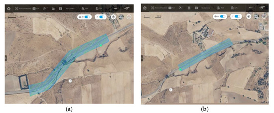 A drone Mavic–Pro M1P was employed. The surface taken and the flight routes can be seen in Figure 17.