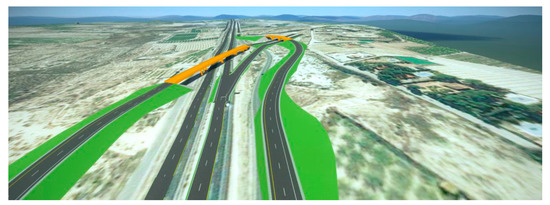 However, as was shown in the previous study (Figure 11), there is a lack of references about the systematization in construction. In order to achieve this objective, taking the road safety and the costs as key variables that guide the design through the different software and independent criteria, aligned in such a way that the best design could be systematically guaranteed. The project objective was to deviate the A-30 highway in Murcia, Spain. To do so, a fly-over bridge was included, and the main platform was modified as can be seen in Figure 20.