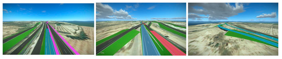 As above said, the application of the BIM methodology to road maintenance requires the previous generation of a photogrammetric grid provided by drone flying. In these cases, the operability with Revit software of Autodesk is quite limited. It is then necessary to turn to intermediate software such as Meshlab, Inventor, or FormIt that use friendly formats as *.obj, *.dgn, or *.skp although they still suffer important information losses. In these circumstances the use of OpenRoads ConceptStation of the commercial firm Bentley and ContextCapture as intermediate software are recommended. The reconstruction process used the information of the aerial triangulation to process the images and create a three-dimensional dataset. Such a dataset can be obtained as a 3D mesh, a point cloud, or raster images (see Figure 18).