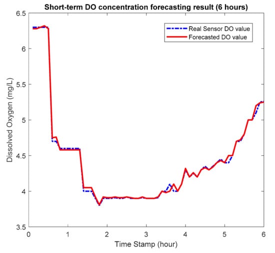 Short-term (6 h) forecast result measured against actual dissolved oxygen (DO) concentration values.