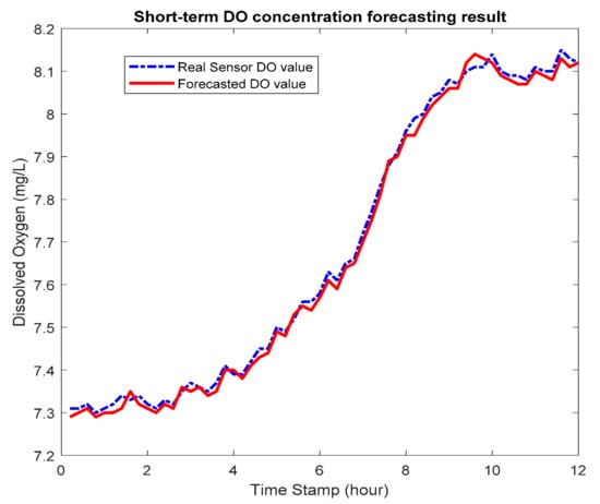 Short-term (12 h) forecast result measured against actual DO concentration values.