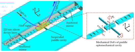 - Healey, C.; Kaviani, H.; Wu, M.; Khanaliloo, B.; Mitchell, M.; Hryciw, A.C.; Barclay, P.E. Design and experimental demonstration of optomechanical paddle nanocavities. Appl. Phys. Lett. 2015, 107, 231107. [Google Scholar] [CrossRef]