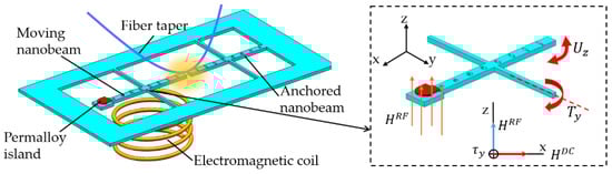 - Hajisalem, G.; Losby, J.E.; de Oliveira Luiz, G.; Sauer, V.T.; Barclay, P.E.; Freeman, M.R. Two-axis cavity optomechanical torque characterization of magnetic microstructures. New J. Phys. 2019, 21, 095005. [Google Scholar] [CrossRef]
