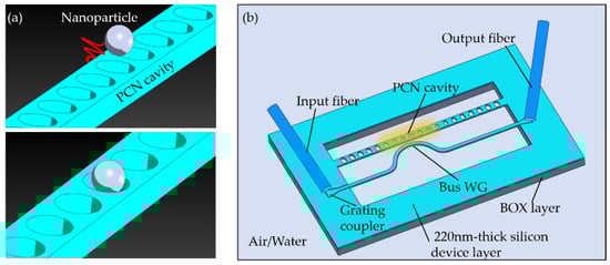 - Liang, F.; Quan, Q. Detecting single gold nanoparticles (1.8 nm) with ultrahigh-Q air-mode photonic crystal nanobeam cavities. ACS Photonics 2015, 2, 1692–1697. [Google Scholar] [CrossRef]