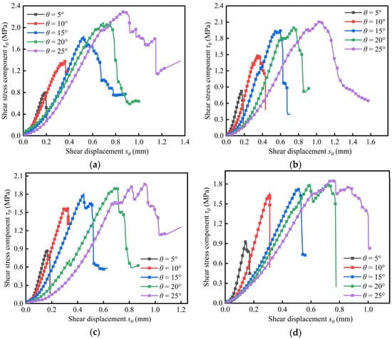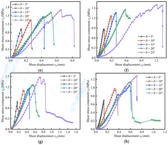 3.2. Effect of Loading Rate and Inclination Angle on Shear Stress Componen–Shear Displacement Curve