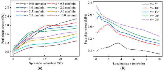 3.3. Effect of Loading Rate and Inclination Angle on Peak Shear Stress