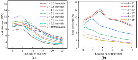 3.4. Effect of Loading Rate and Inclination Angles on Peak Axial Stress