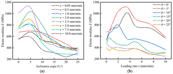 3.5. Effect of Loading Rate and Inclination Angle on the Elastic Modulus