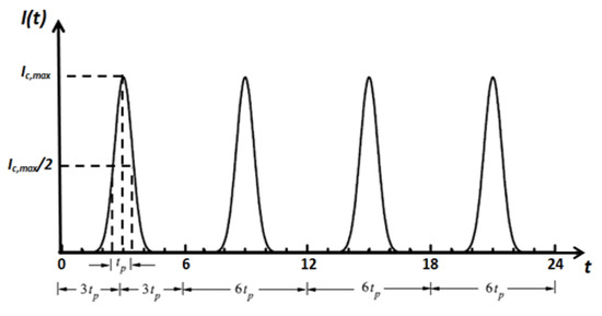 where Ic,max denotes the maximum radiation intensity of the laser pulse, which occurs at t = tp; tp is the full width at half maximum (FWHM); dc = x/cosθc is the geometric distance; and Tp (=2tc), tc = 3tp and δ represent the time period, cut-off time and Dirac-delta function, respectively.