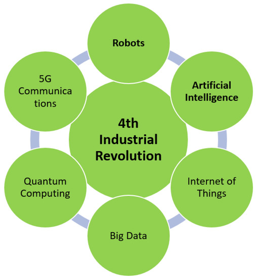 The Fourth Industrial Revolution considers the replacement of humans by machines in certain tasks, or the development of new or more efficient tasks. Making use of robots and artificial intelligence, the Fourth Industrial Revolution is already deeply modifying society and organizations [1]. As seen in Figure 1 the Fourth Industrial Revolution comprises other parameters besides robots and artificial intelligence [2]. Robots need to communicate and to sense the environment (using sensors and communications), for which the Internet of things (IoT) is employed (all over the Internet protocol (IP)). The IoT generates massive quantities of data (big data) that will be processed with artificial intelligence to generate knowledge; that is, the data supports human decision-making, as well as decisions made by the robots. [3]. These new technologies will originate a deep modification of society with great impact on the human way of life, as well as on the employment market [4].