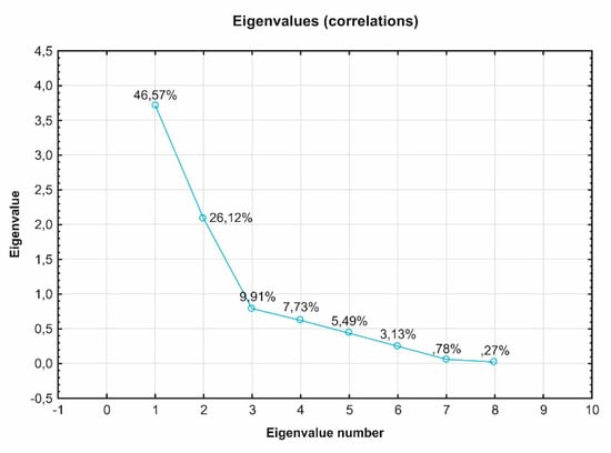 - Kaiser, H.F. The application of electronic computers to factor analysis. Educ. Psychol. Meas. 1960, 20, 141–151. [Google Scholar] [CrossRef]