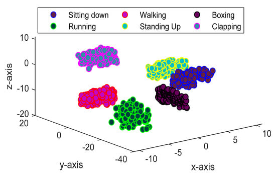 Three datasets were used in this experiment. The MOTIONSENSE dataset [] is taken from the accelerometer and gyroscope sensors of an iPhone with a time constraint of 6 seconds. Six activities were performed by 24 participants in different manners, i.e., downstairs, jogging, going upstairs, sitting, walking, and standing.