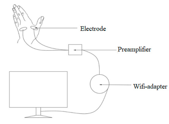 The model of muscle tension recording with terms of the surface electromyography (sEMG) system.