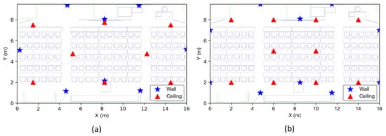 Deployment plans. (a) 8 iBeacons; (b) 10 iBeacons.