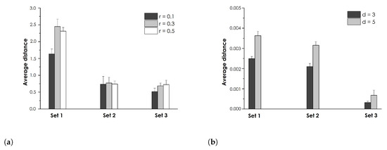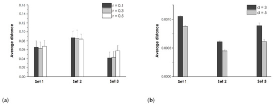 Regarding the other parameter for FEn computation, all the considered r values allowed us to distinguish the expected number of gestures (see Section 3) and the goodness of clustering appeared poorly affected by its numerical values: the average distance of each point from the respective cluster showed almost the same value, for each r and each gesture set (Figure 5). This aspect highlights the validity of using the FEn as a possible feature for EMG-based gesture recognition, and when dealing with poor quality signals such as those provided by the Myo armband. Further, it also suggests that the use of FEn can be suited for the description of hand gestures which present different functional characteristics with respect to [16], involving indeed pure finger movements (set 1) and complex gestures which mimic routine daily activities (set 3). The same holds also considering the distances of all points from every cluster (Figure 6), where in addition the clusters for the first set of gestures were more spaced with respect to the other sets (Figure 3). This indicates that by using the FEn together with an off-the-shelf device for forearm sEMG signal acquisition, it might be possible to distinguish subtle hand gestures involving single-finger movements in addition to the more common hand and wrist movements [14,16], considered in set 2.