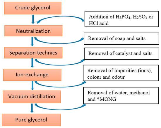 Crude glycerol purification process. * Matter organic non-glycerol.