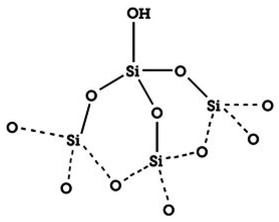Mesoporous silica is an ordered porous network material with SiO4 tetrahedral as the building block, illustrated in Figure 5. It is made of weak Bronsted acid oxides and hence has a low catalytic value. However, because the surface is amenable to functionalization and other modifications, resulting in a highly stable material with a high surface area and large pore size, it is currently receiving significant attention as catalyst support in various reactions to enhance the reactivity and selectivity of products, especially of large molecules like fatty acids and their esters [59,117,124].