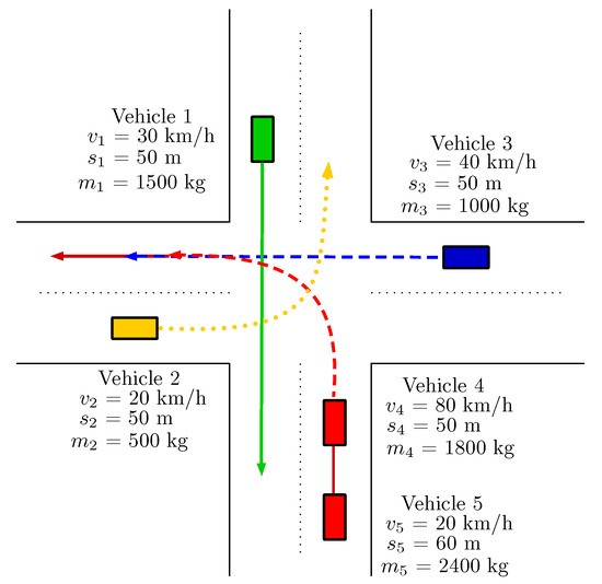 Intersection scenario with five vehicles.