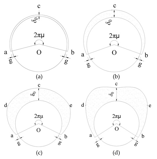 Figure 14. Engineering geometric models of radial ice: (a) annular shaped, (b) crescent shaped, (c) sector shaped, and (d) D shaped. - (2)