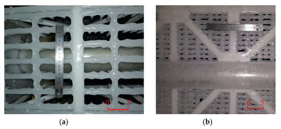 - Since the grate plate was composed of interconnected slender elements, the ice accretion on adjacent elements connected, which resulted in a decreased porosity and an increased thickness, respectively (Figure 21). Meanwhile, a large number of icicles were produced under the grate plate, which was like a large icicle matrix. However, the sizes of the icicles under the grate plate had upper limit, and they would stop growing after the porosity of the grate plate became zero.