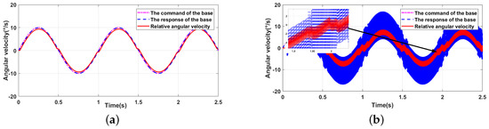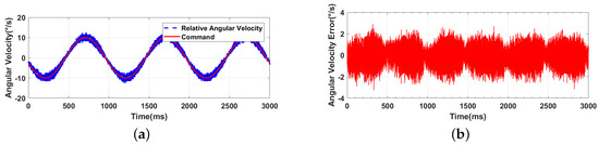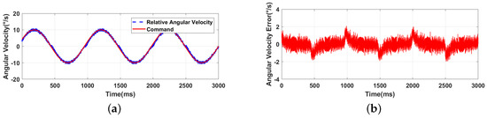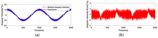 - Furthermore, the method proposed in this study shows great disturbance compensation and tracking performance improvements. The phase between the response and command in Figure 12a is ahead in comparison to Figure 11a. The relative angular velocity RMSE is reduced from 0.5165 /s to 0.3610 /s in Figure 14.