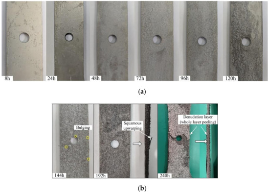 - Zhao, P.F.; Su, X.Q.; Wu, J.S. Accelerated corrosion test spectrum of typical reef atmospheric environment. Equip. Environ. Eng. 2019, 16, 14–21. [Google Scholar]
