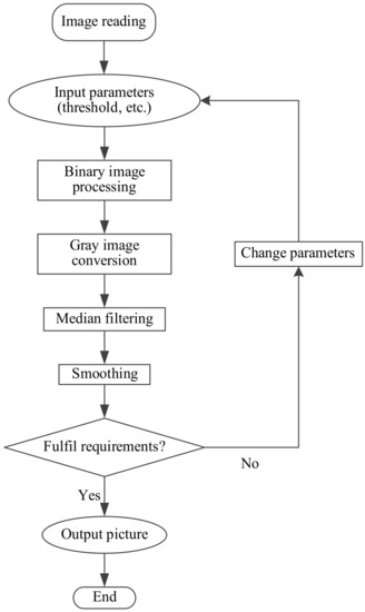 For the acquisition of corrosion rate, the most important thing is to be able to accurately obtain the surface area of corrosion pits, but the corrosion morphology is often more complicated. Even under a high-power microscope, it is difficult to accurately lock the morphology of the pits. If it is equivalent to a regular figure or judged by the naked eye, it will inevitably lead to large errors due to subjectivity. In order to accurately extract the corrosion pits’ shape on the corroded surface and obtain the dynamics of the corrosion rate, this paper proposes a method to obtain the corrosion rate based on image binarization. The specific implementation process is shown in Figure 11.