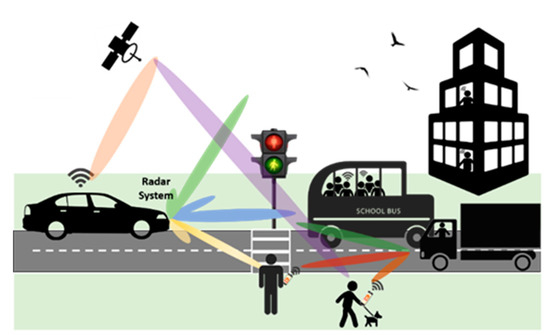 Radio detection and ranging (RADAR) technology, that was mainly used for military purposes, recently has suffered increasing attention, and its application is nowadays widespread in sports, biomedical, military or in transportation systems. Radars are used for surveillance, navigation, localization, traffic control or for weapons guidance. Currently, with the evolution of vehicular networks, smart cities and other intelligent systems, more advanced radar technologies are being developed. In the near future, the extension of the radar concept is expected for two purposes, reflectometry and communications. The scenario of Figure 1 is foreseeable, a panoply of interconnected systems sharing information, and experiencing a huge communications density, with high risk of interferences.