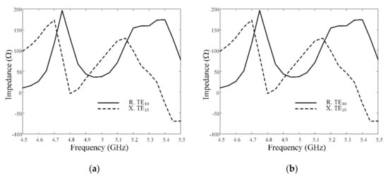 Input impedance of the proposed antenna: (a) TE10 mode; (b) TE20 mode.