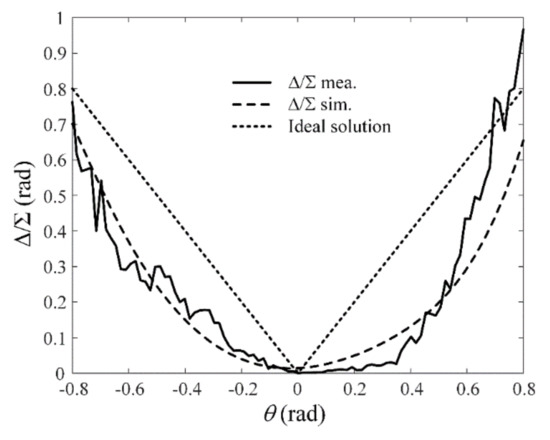 estimation of the proposed antenna, we simulate and measure Δ/Σ in terms of the