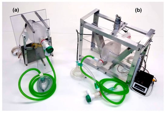 Unlike healthy subjects, who maintain a small volume of air in the lungs once the exhalation is over, critical patients in some cases produce a full exhalation. This causes the fluids that are in the lung to completely fill all the cavities, which means that it is more difficult to inflate the lung again in the following breath cycle, and making it more prone to injury by the mechanical ventilation. Therefore, a minimal positive pressure (positive end-expiratory pressure—PEEP) should be maintained in the lung at the end of the expiration in order to prevent the collapse of the lungs. It is worth mentioning that bag-valve resuscitators are single-use-products, thus, for each new patient, a new resuscitator is needed. Yet, hygienic standards are easy to follow, as the two mechanism prototypes themselves are not part of the pneumatic system itself. In addition, a connecting hose between the bag-valve system and the mask or endotracheal tube will be needed, which is normally not used in manual resuscitation. The total volume of that hose has to be significantly smaller than the tidal volume pumped in order to ensure appropriate exhaustion of the exhaled CO to the atmosphere.