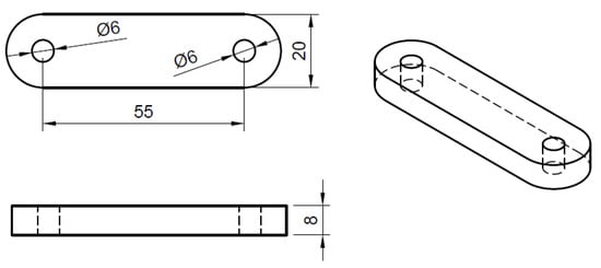 Schematic representation of the connecting rod. Sizes shown are just for reference and have not been optimized. The design will require adjustments.