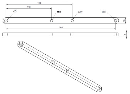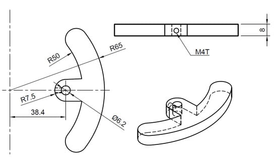 Schematic representation of the arm rod. Sizes shown are just for reference and have not been optimized. The design will require adjustments.
